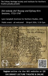 This seminar is open to the public and is in partnership between Orkney Heritage Society and UHI / Institute for Northern Studies. For more detail, see the event page on UHI website.